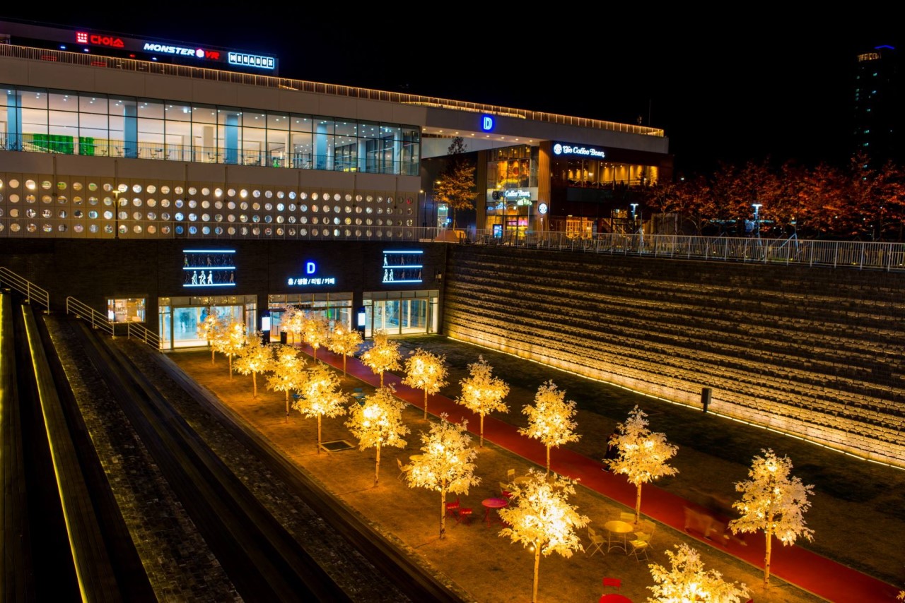 저녁 전후에는 트리플스트리트에서 쇼핑과 VR 체험, 영화 관람 등을 즐길 수 있습니다. 볼거리, 먹거리, 즐길거리 그리고 다양한 문화 콘텐츠가 어우러진 복합문화공간 입니다. 주말에는 야외 플리마켓과 버스킹 공연이 열리는 경우도 많아 데이트에 특별한 분위기를 더할 수 있습니다.