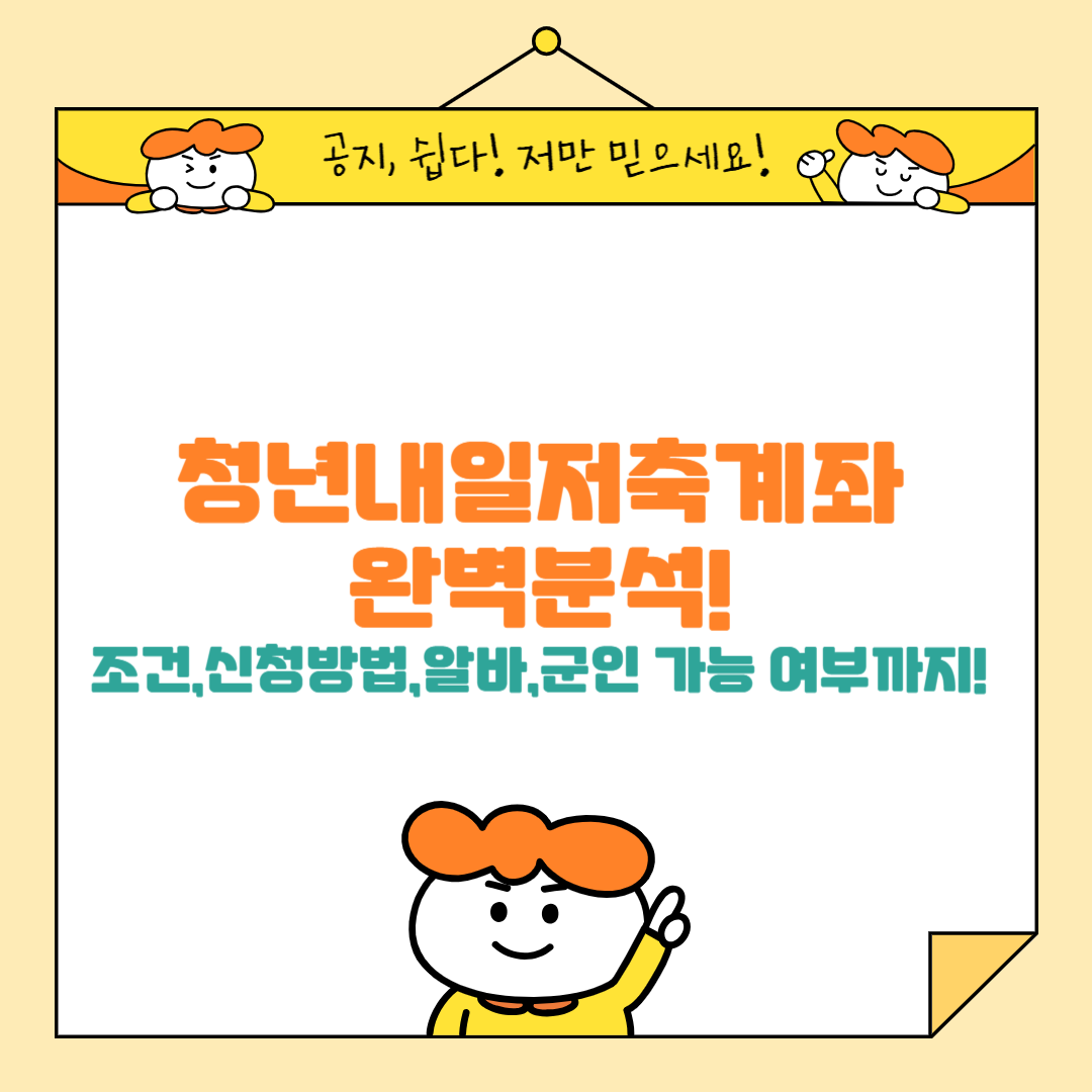 청년들의 자산 형성을 돕는 정책 중 하나인 청년내일저축계좌는 일정 요건을 충족할 경우 정부에서 저축액만큼 지원금을 더해주는 제도입니다. 복잡할 수 있는 이 제도를 오늘 포스팅에서 쉽게 정리해드릴게요.