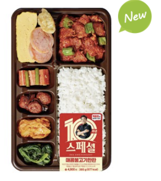 - 구성: 매콤불고기,계란말이,햄 외 반찬 4가지