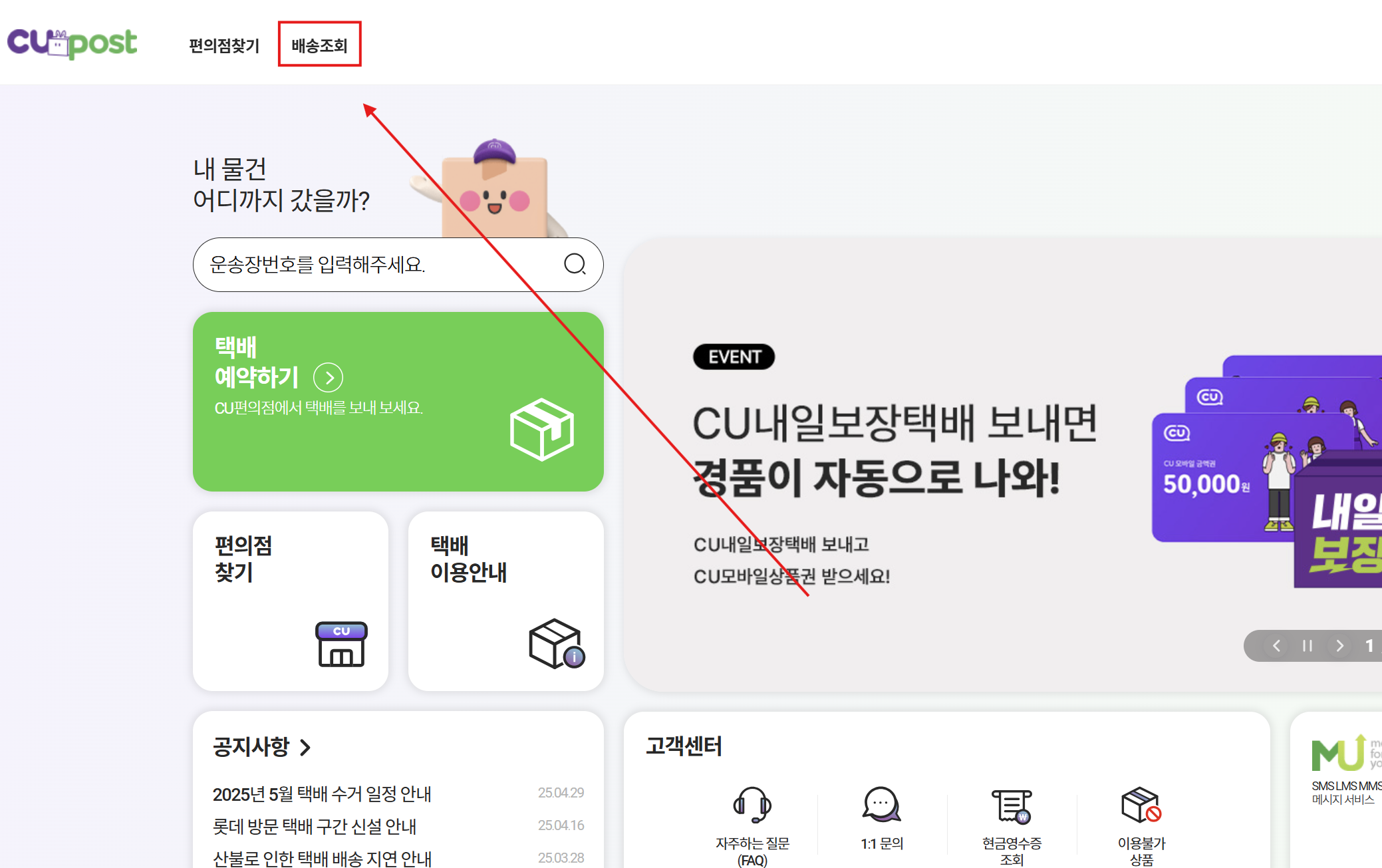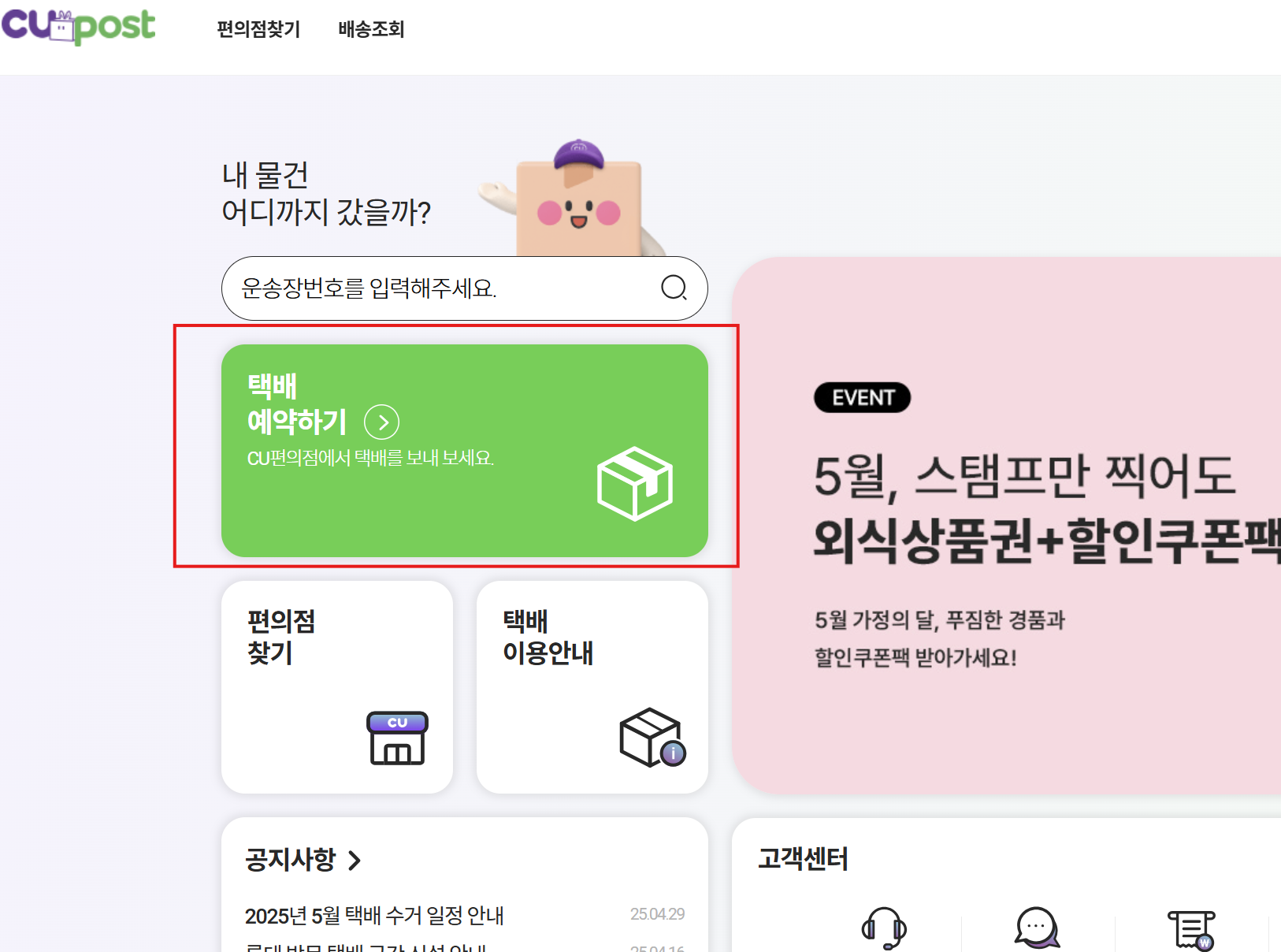 택배 접수 가능한 CU 편의점은 아래 링크에서 확인할 수 있습니다.